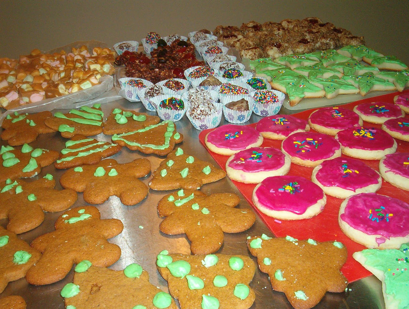 My kitchen has been very busy this December with flour and sugar and all things sweet (especially the H.G.) all around. She likes to give homemade cookies and treats as Christmas gifts. These pictures are a sample of her baking AFTER a Christmas party and 3 gift tins.