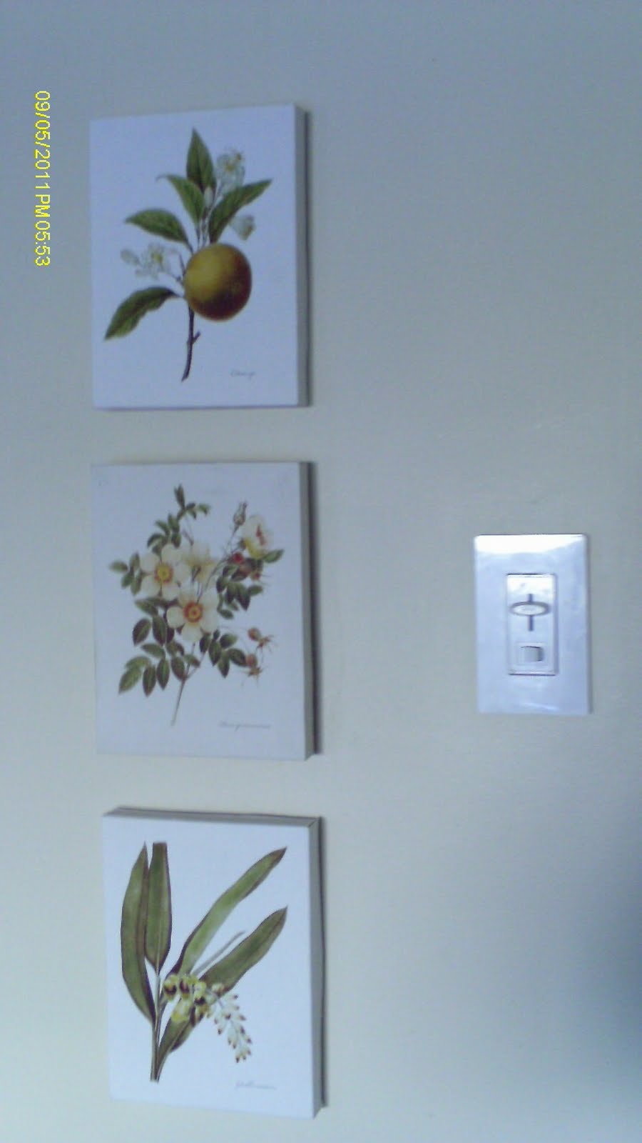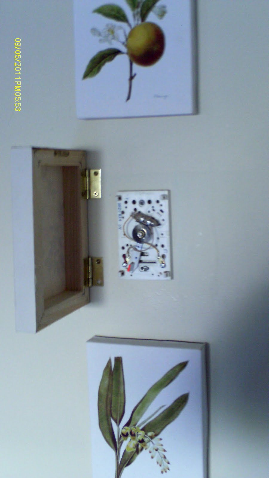 I went back to the grocery store where the prints were now $1.99 each. Yup. Two bucks. It was a sign! So I screwed 2 little hinges on the back of the print and then to the wall.