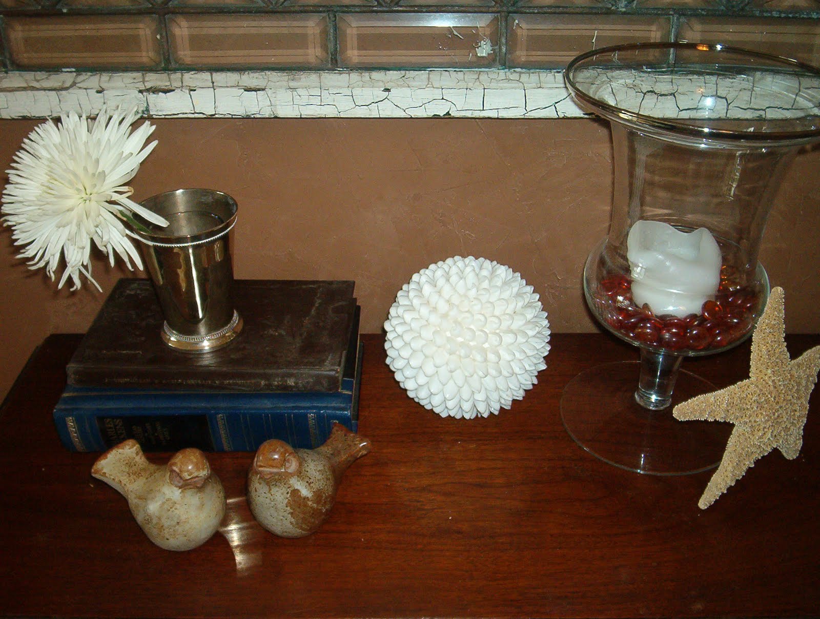 4. Urn and glass pebbles: Sears, around 6 years ago for $20 bucks.