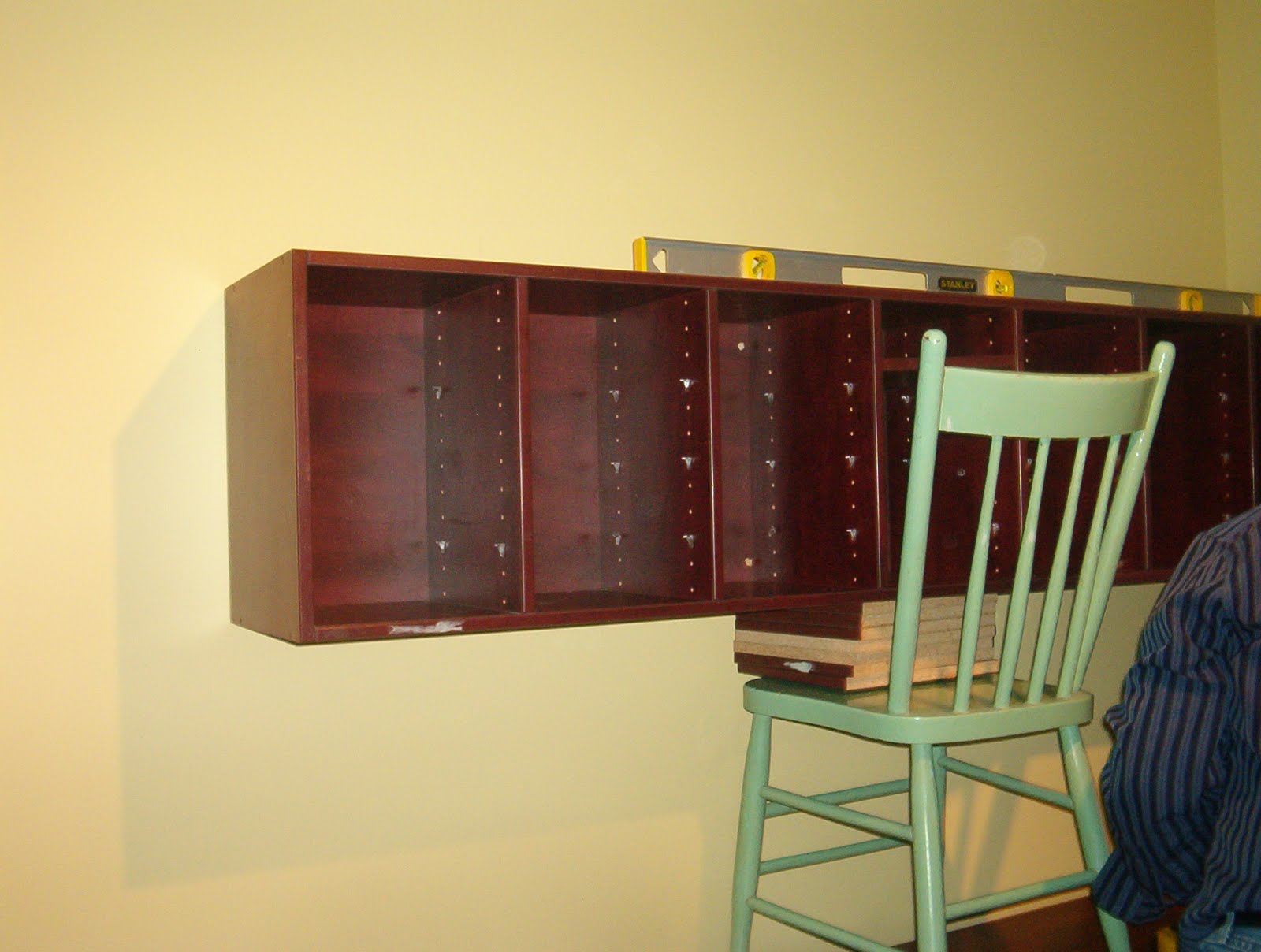 WARNING! This is NOT the way to hang a heavy item. This is totally MacGyvered. And completely wrong. Well, except for the level. That's right. And, it worked anyway, so who am I to judge? :)