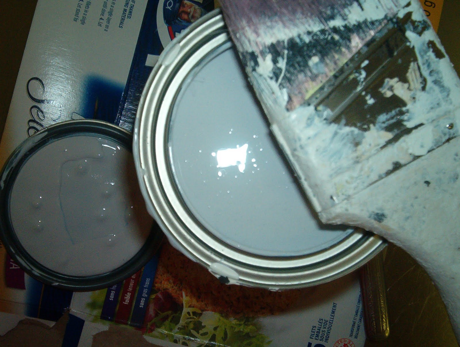 I love the colour blue. My husband's eyes are a deep gorgeous blue, I chose the colour for my wedding china, my bedding is currently blue and usually has been throughout the years and even my living room furniture is blue. Even Jack loves blue - it's also the colour of his car - and the BMW logo! So I was thrilled when I popped into my Benjamin Moore retailer and found a quart-sized mistint in the most delightful grey-blue called Iced Slate (2130-60) for $4. You heard me. Four bucks.
