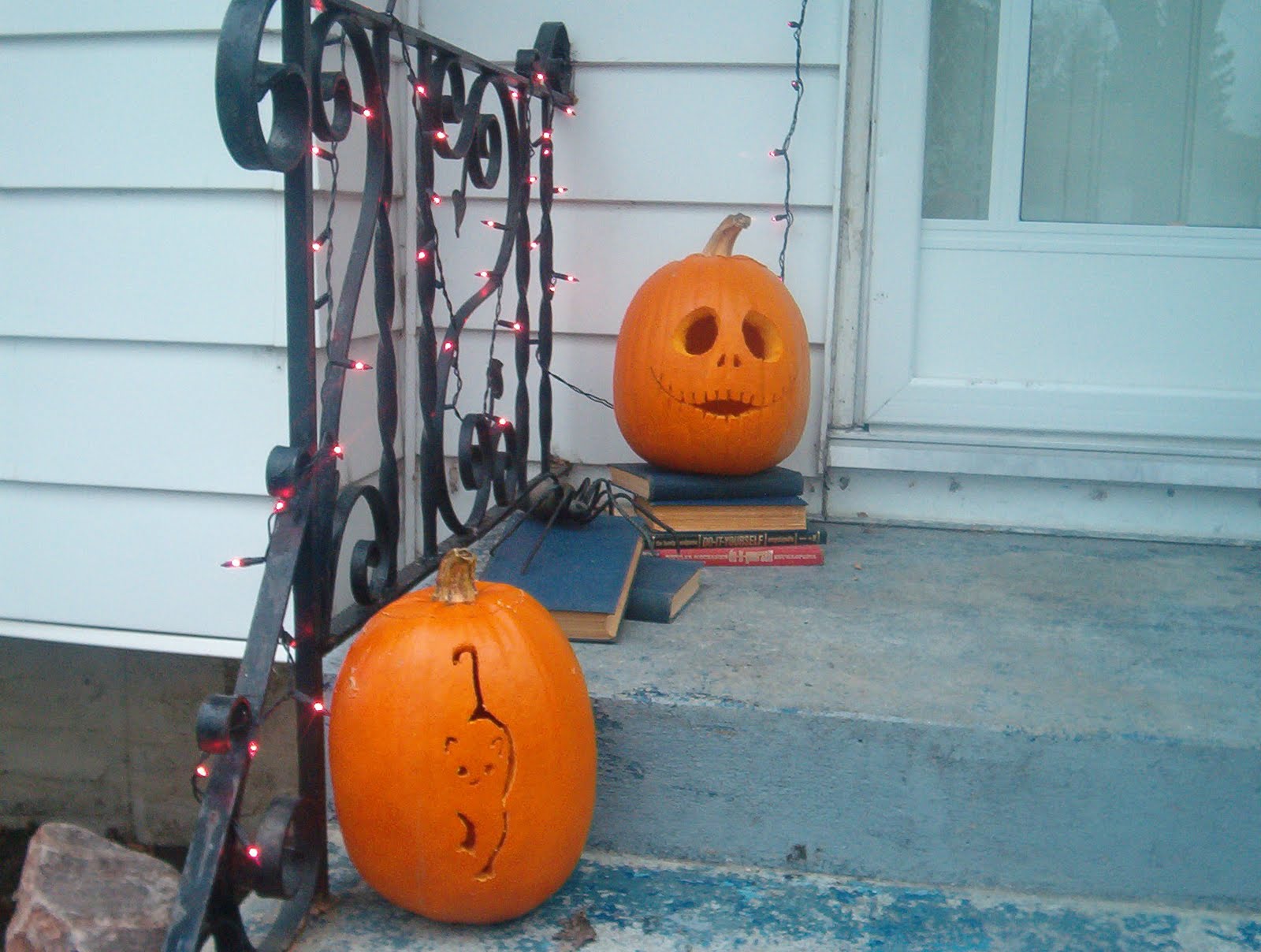 Two of the hand-carved pumpkins - Louis is a cat-lover. (Hi, Jasmine and Buddy!)
