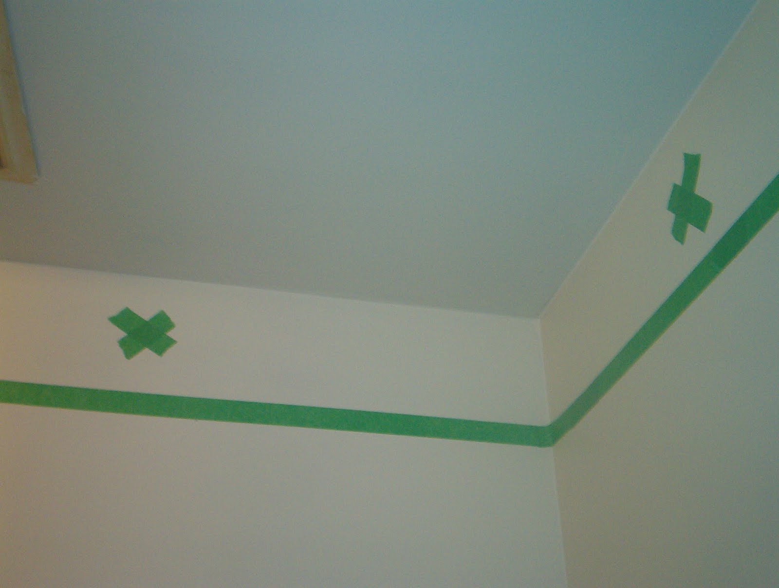 I "x-ed" each stripe that would stay white. My family mocked me for this. However, when your nose is half an inch from the wall, it help to put the "idiot-strings" up.