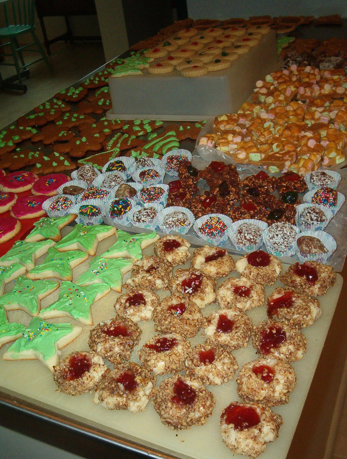 My kitchen has been very busy this December with flour and sugar and all things sweet (especially the H.G.) all around. She likes to give homemade cookies and treats as Christmas gifts. These pictures are a sample of her baking AFTER a Christmas party and 3 gift tins.