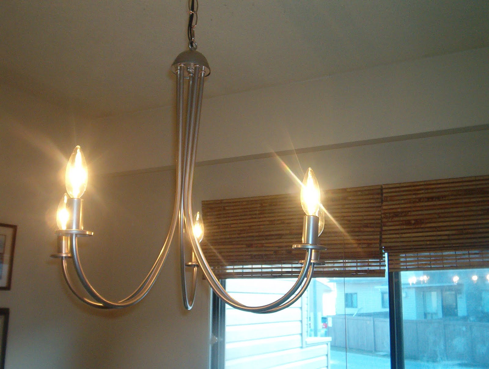 My breakfast nook chandelier...courtesy of my local Goodwill store. And best of all? 20 buckeroos, including lightbulbs! I didn't even paint it, but I am reserving the right to change my mind.