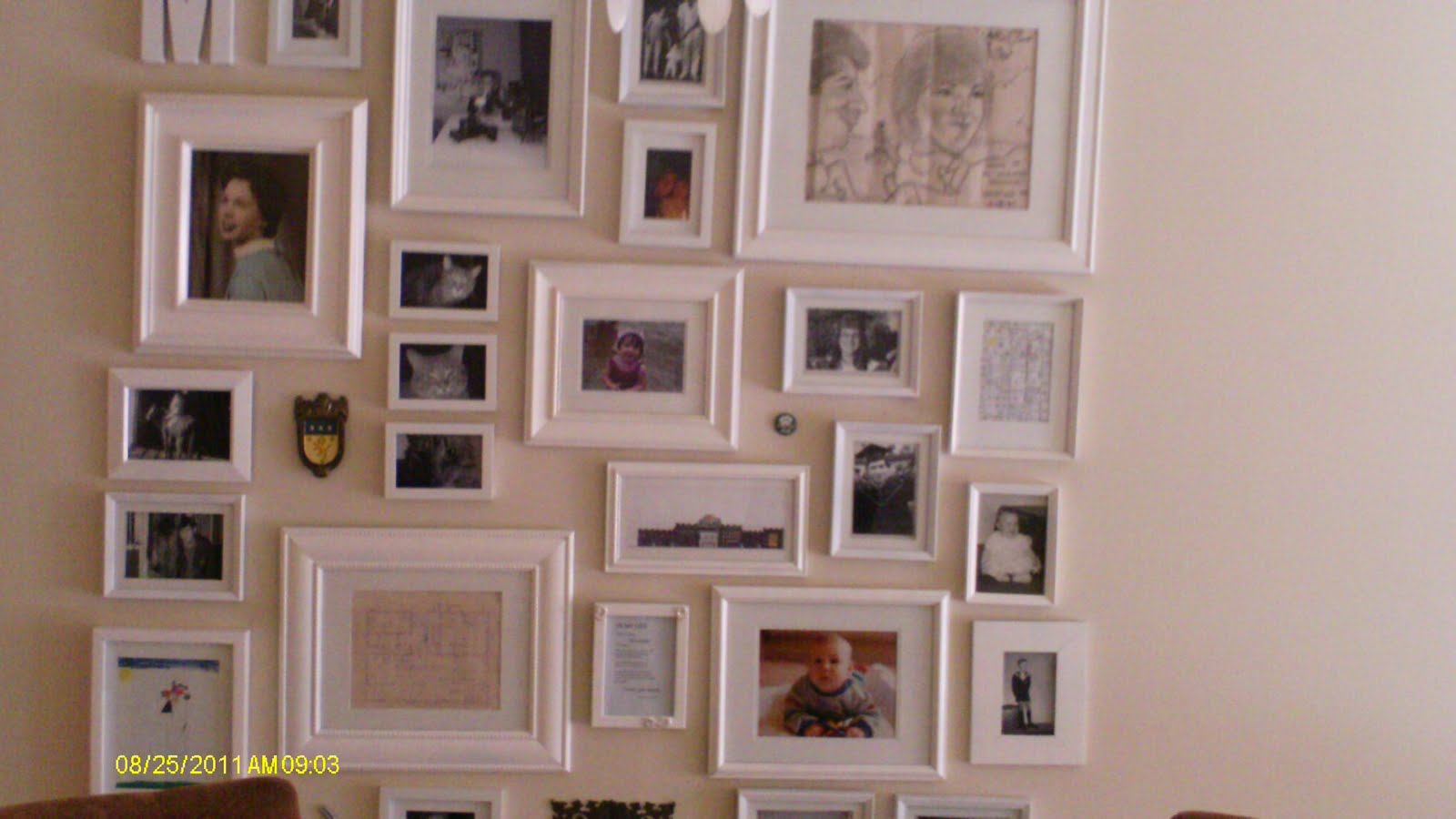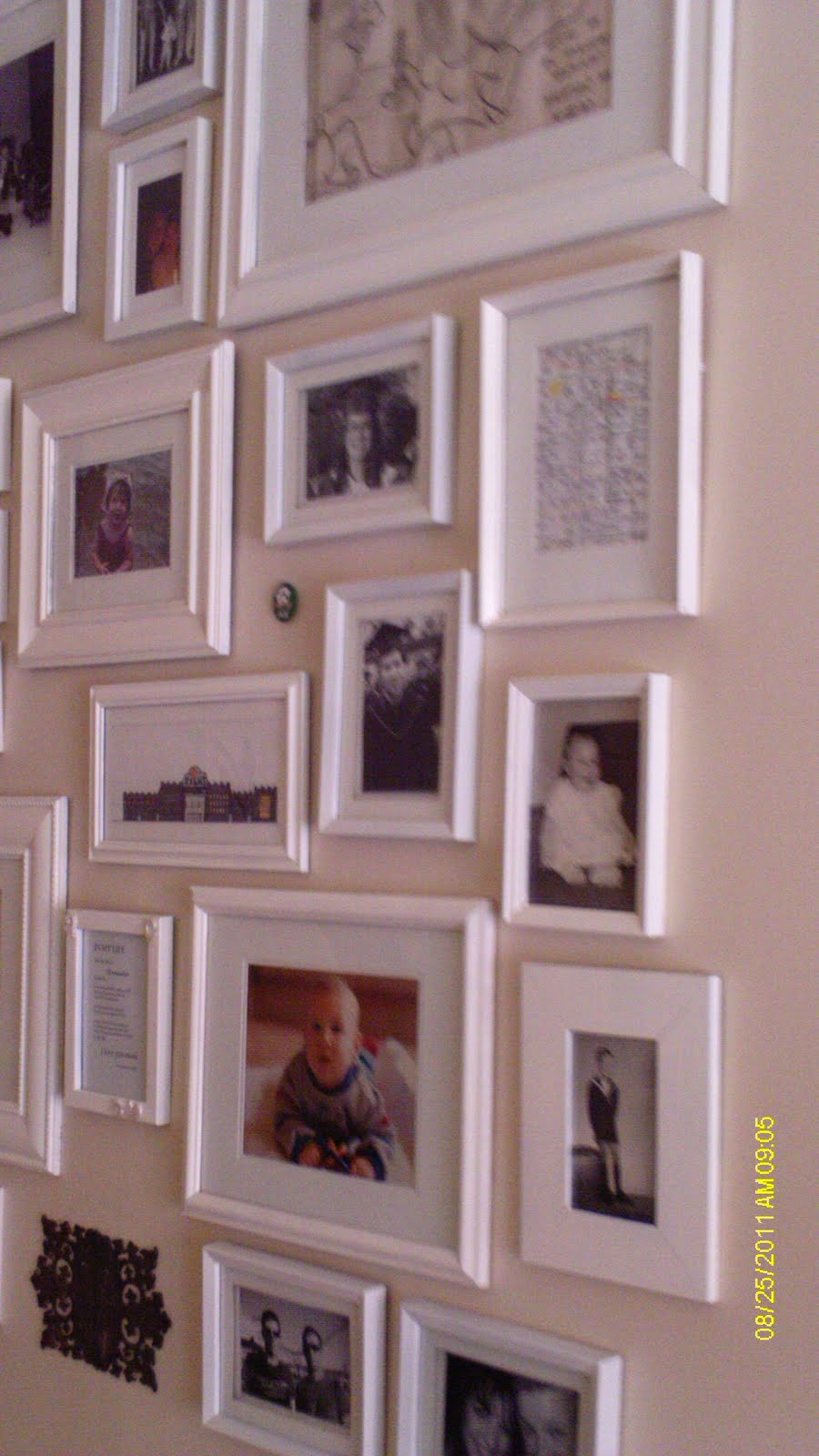 I started by deciding which pictures I wanted to use. The only criteria was that each image had to make me smile or evoke a happy memory. I refused to use anything that I felt "should" be displayed. I am sorry to say that I have done that in the past. I decided to make my home truly "rise up to greet me" (thanks, Oprah and Nate) and that I would start with this wall.