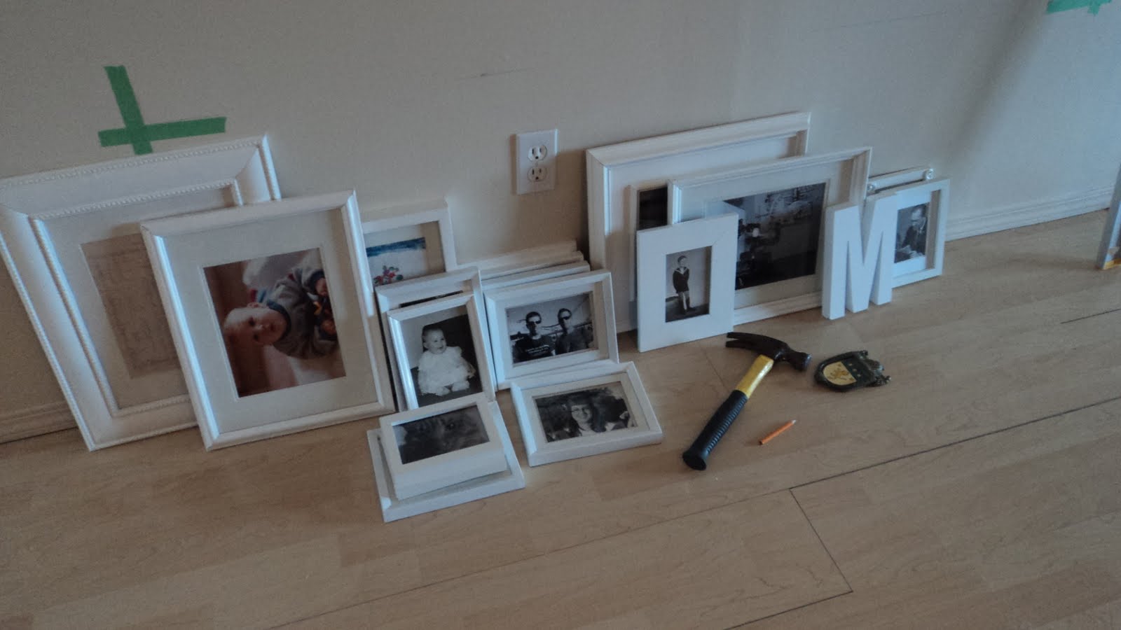 Then I moved everything into the dining room. Duh. Why didn't I put everything on the dining room floor???? Because I like doing everything twice? Then I hammered indiscriminately. Don't look behind the pictures - there are lots of holes ;P (ssshh, don't tell anyone), but I like the freeform style.
